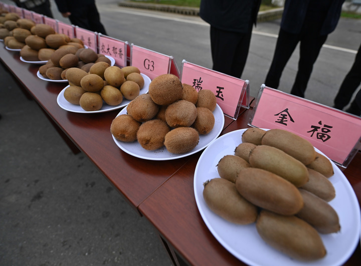这是在西安市周至县农业科学技术试验站展示的猕猴桃品种(10月29日摄)。