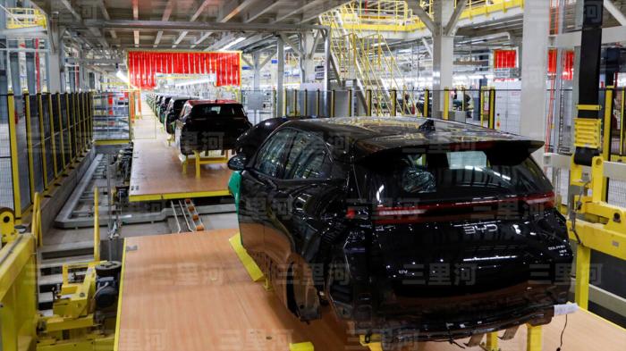 比亚迪巴西工厂正在组装汽车。图源:路透社。