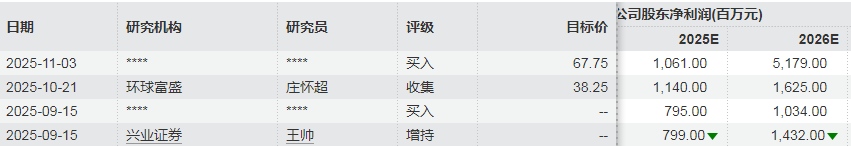 Wind数据显示,11月以前,卖方对公司2026年的盈利预期值保持在13亿-16亿元之间;11月以后,华泰证券则将其2026年盈利上调至51.79亿元。