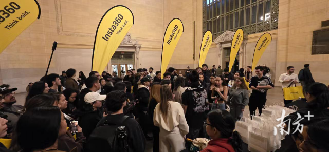 “全球智能影像第一股”的影石创新于今年4月发售的全景相机引爆海外。图为纽约市民排队抢购。影石创新供图