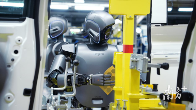 “人形机器人第一股”优必选科技的产品已进入比亚迪、吉利、奥迪一汽新能源、富士康等企业工厂进行实训。优必选供图