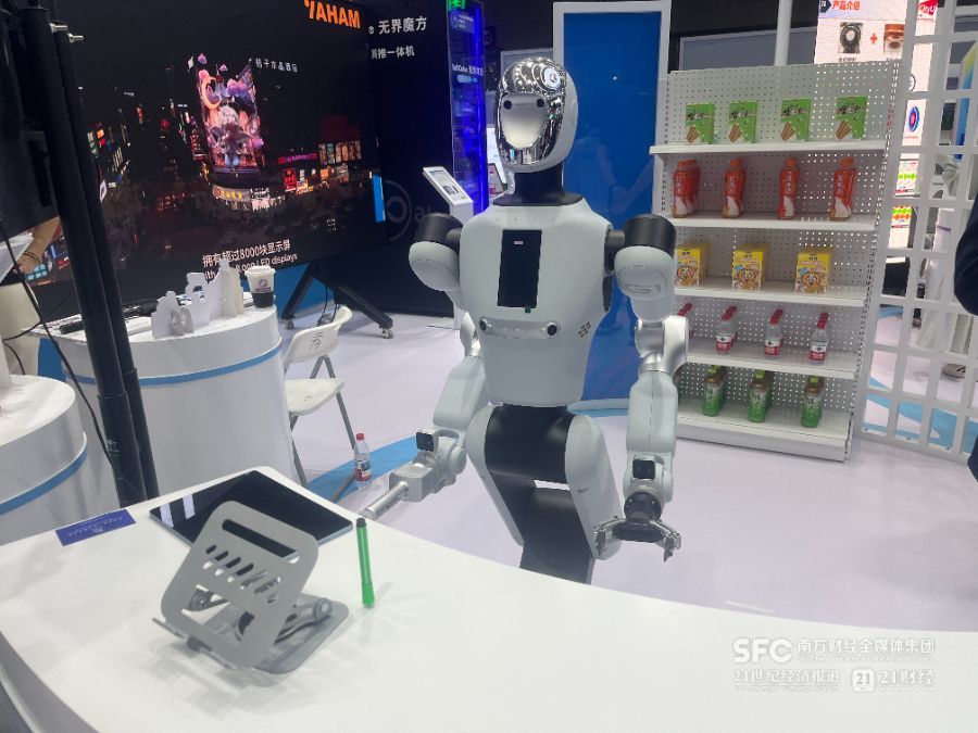 深圳银河通用则在现场模拟无人零售场景中机器人自动取货、前台交互的全流程。公司高级商务经理雷杰鹰向记者表示,该G1机器人已在智慧药房、工业物流、酒店接待等场景落地超百台,明年还将推出重载版本,进一步拓展工业应用。