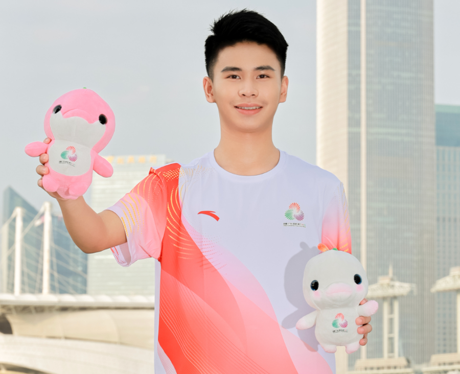 第23棒是来自广州市花都区邝维煜纪念中学学生、国家跳绳队运动员钟炜锋,这位16岁广州站最年轻火炬手表示,在家门口当上火炬手很激动,会用微笑和挥手互动。“希望在这次火炬传递中,将体育精神传递给更多人。”