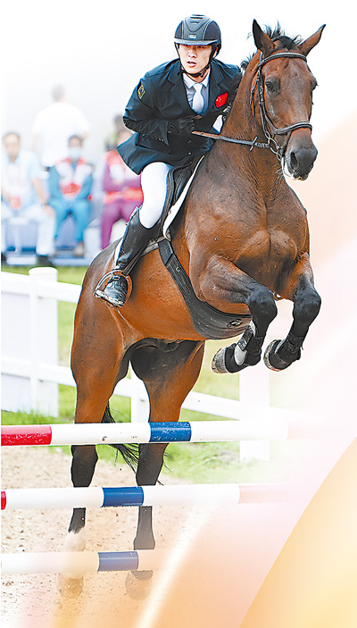 9月21日,湖北队选手陈柏良在第十五届全国运动会现代五项马术比赛中。新华社记者 邓 华摄