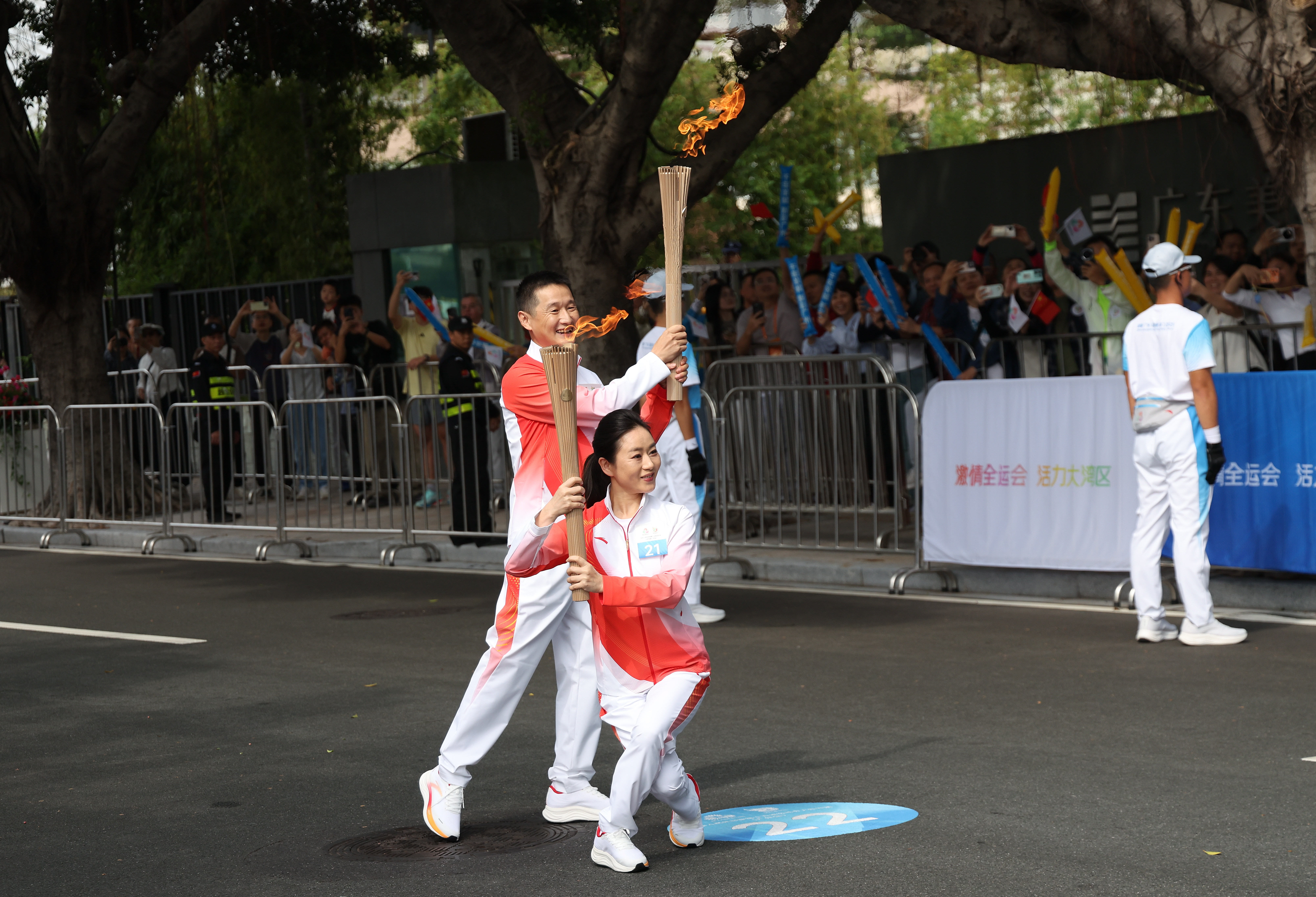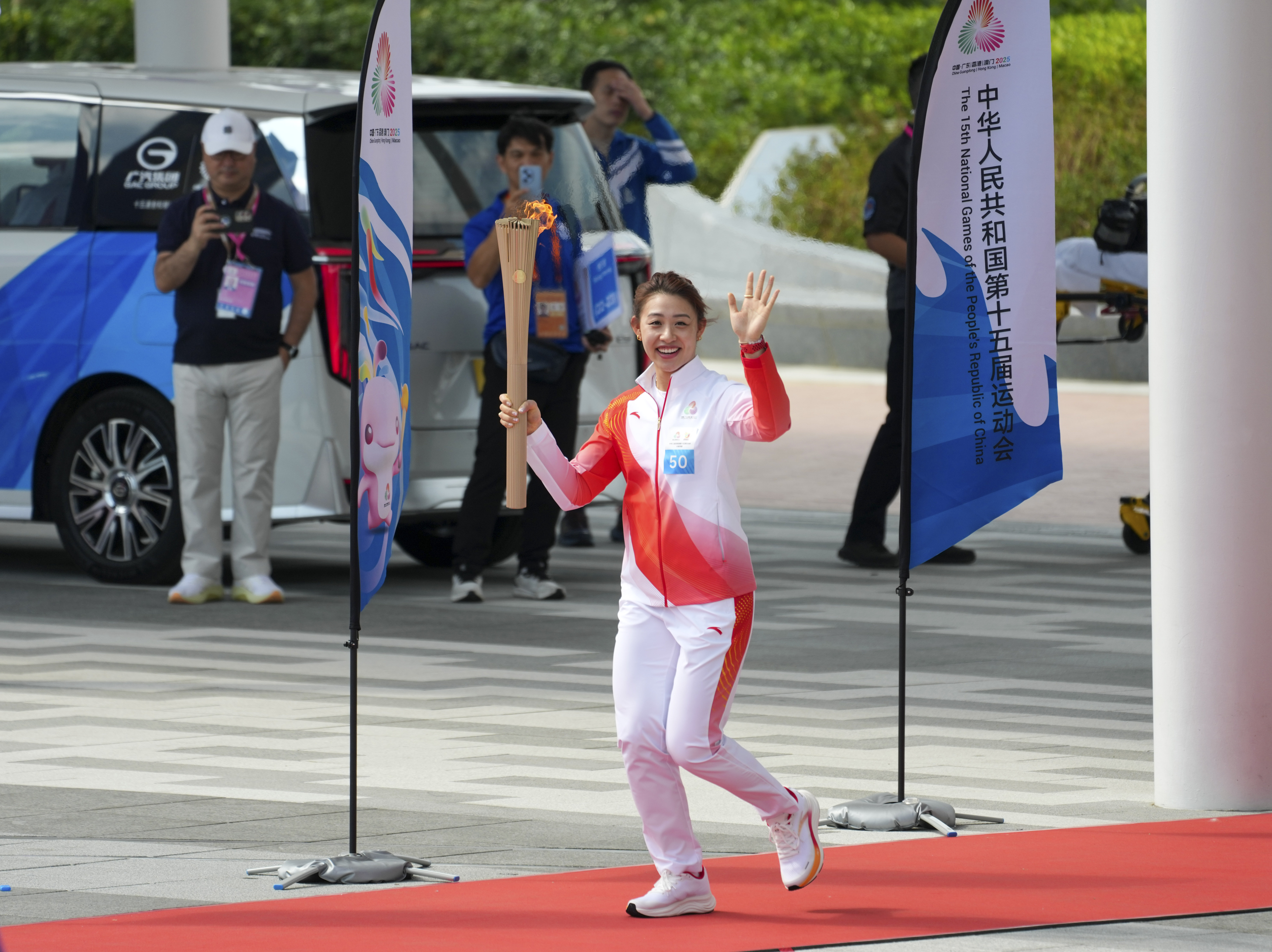 11月2日,第十五届全国运动会火炬传递在香港、澳门、广州、深圳四个城市同步举行,这是全运会历史上首次跨境火炬传递,也是全运会火炬首次在香港和澳门传递。