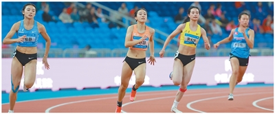 浙江队选手陈妤颉(左二)在十五运会田径项目女子200米预赛中。记者 陶相安摄