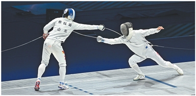 运动员在十五运会击剑项目男子重剑个人决赛中。记者 王亮摄