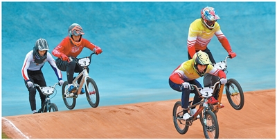 运动员在十五运会竞速小轮车比赛中。记者 蒋雨师摄