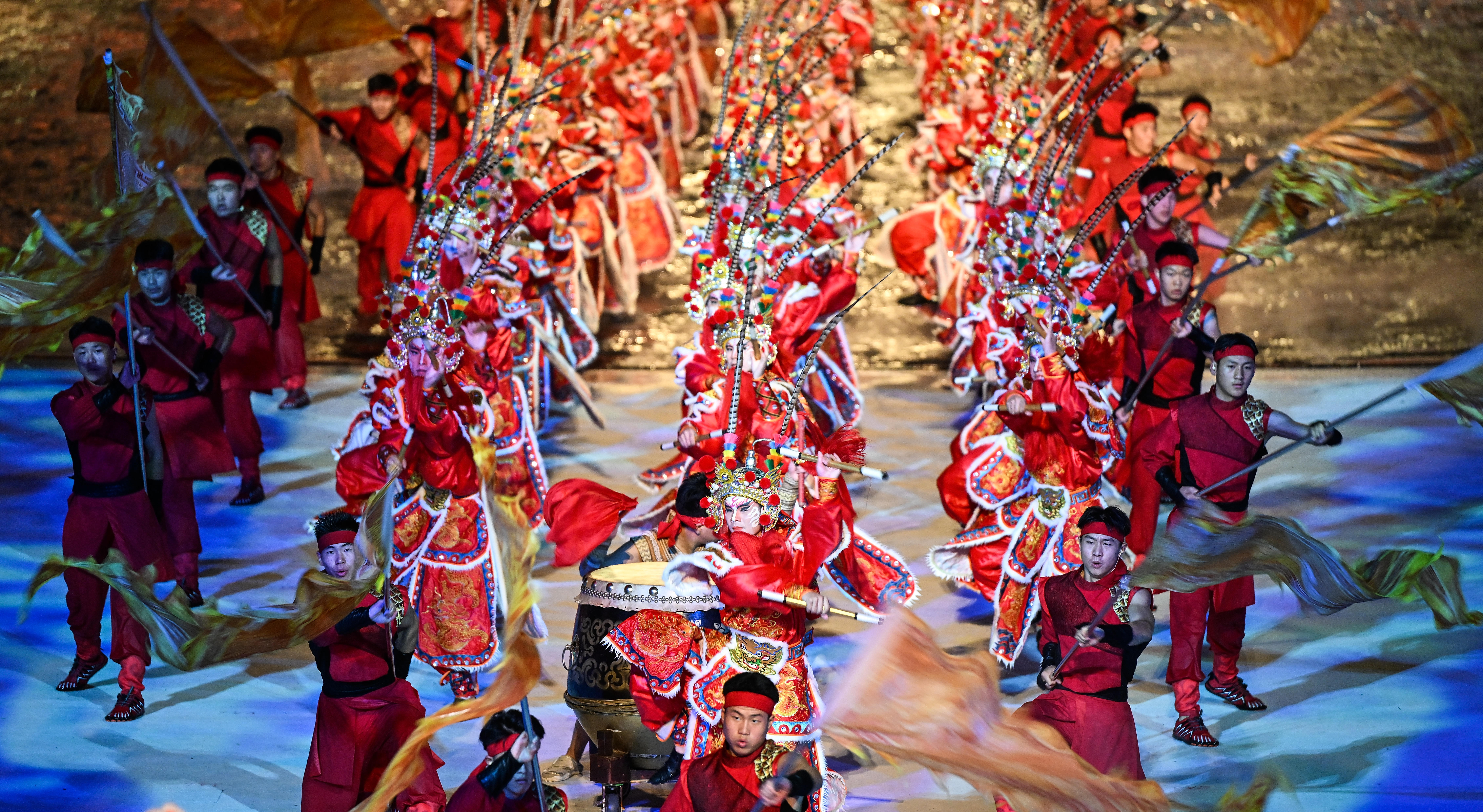 ↑11月9日,演员在开幕式现场表演。新华社记者 邓华 摄