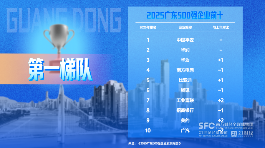 前十的榜单里依次还有华润、华为、南方电网、比亚迪、腾讯