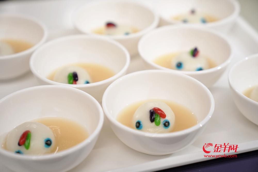 11月21日是江门美食日,当天饭堂里就出现了有以江门为代表的五邑地区特色的陈皮水鸭汤、开平马冈鹅、荷塘鱼饼、鹤山鱼皮角、司前温蛋等菜品。