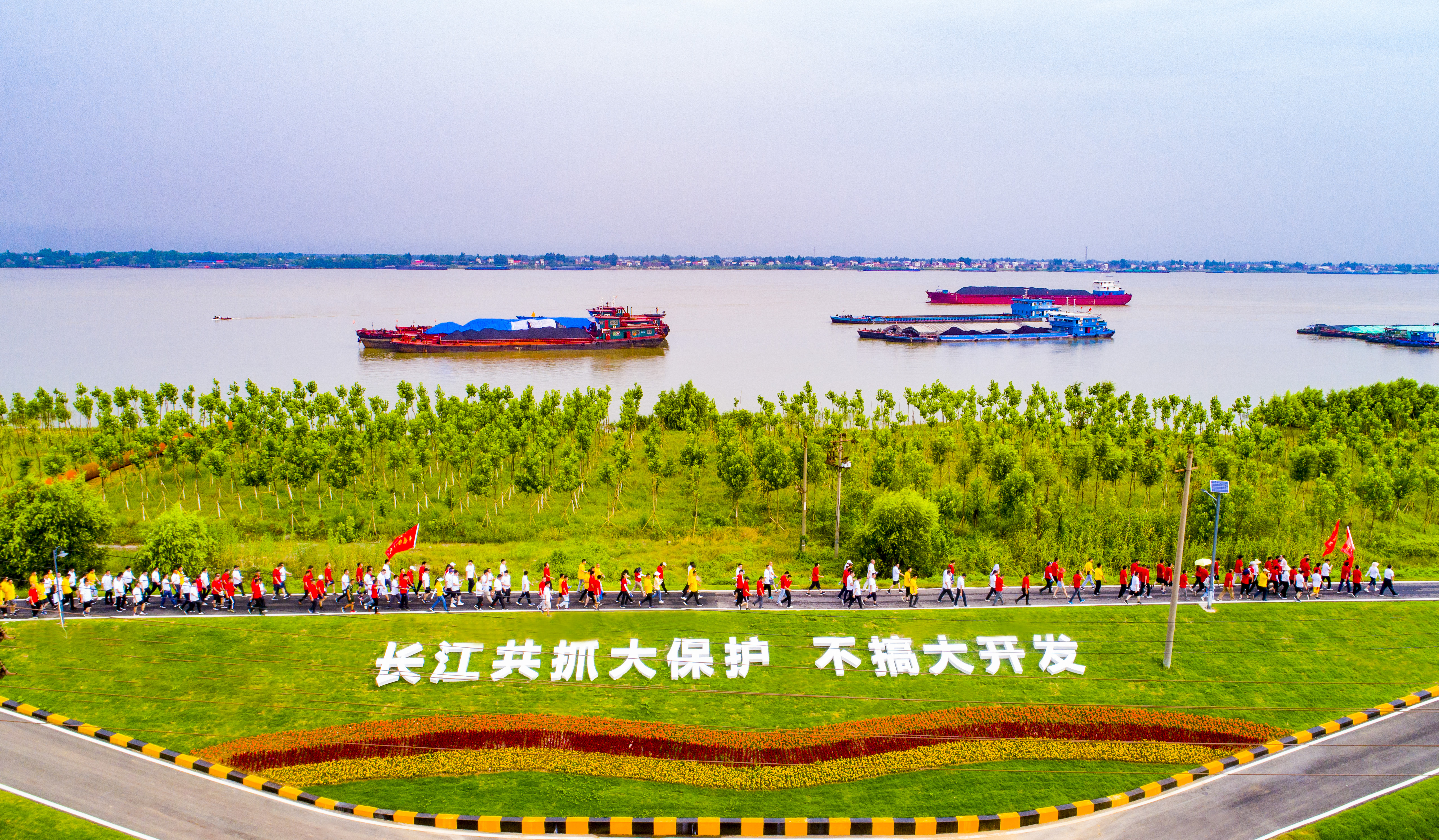 货船在长江江西湖口段江面上行驶(2019年7月1日摄)。新华社发(李学华摄)