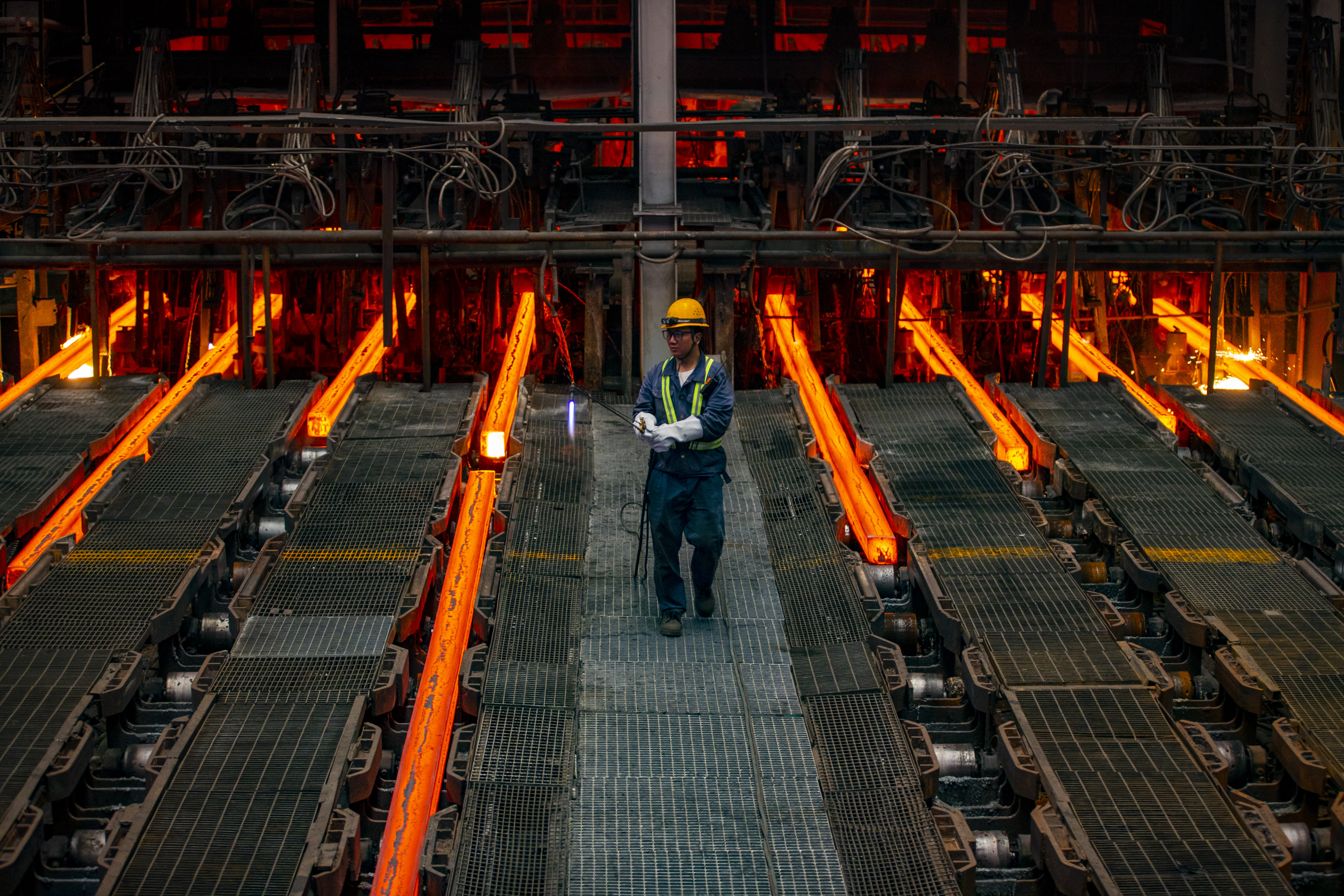 工人在方大集团九江萍钢钢铁有限公司的生产车间作业(2025年4月3日摄)。新华社发(李学华摄)