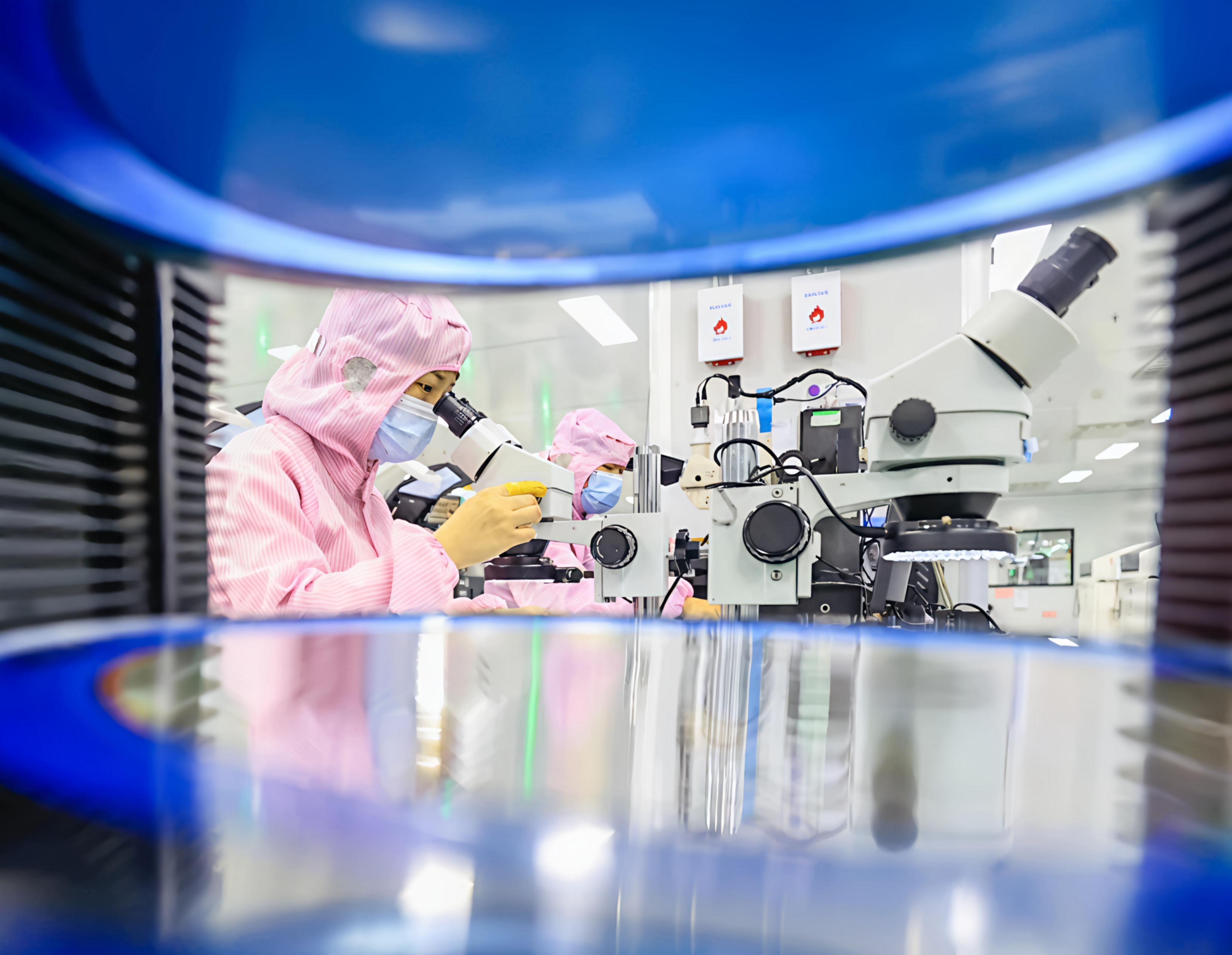 在江西天漪半导体有限公司生产车间,技术人员在检测芯片产品(2024年2月28日摄)。新华社发(吴江摄)