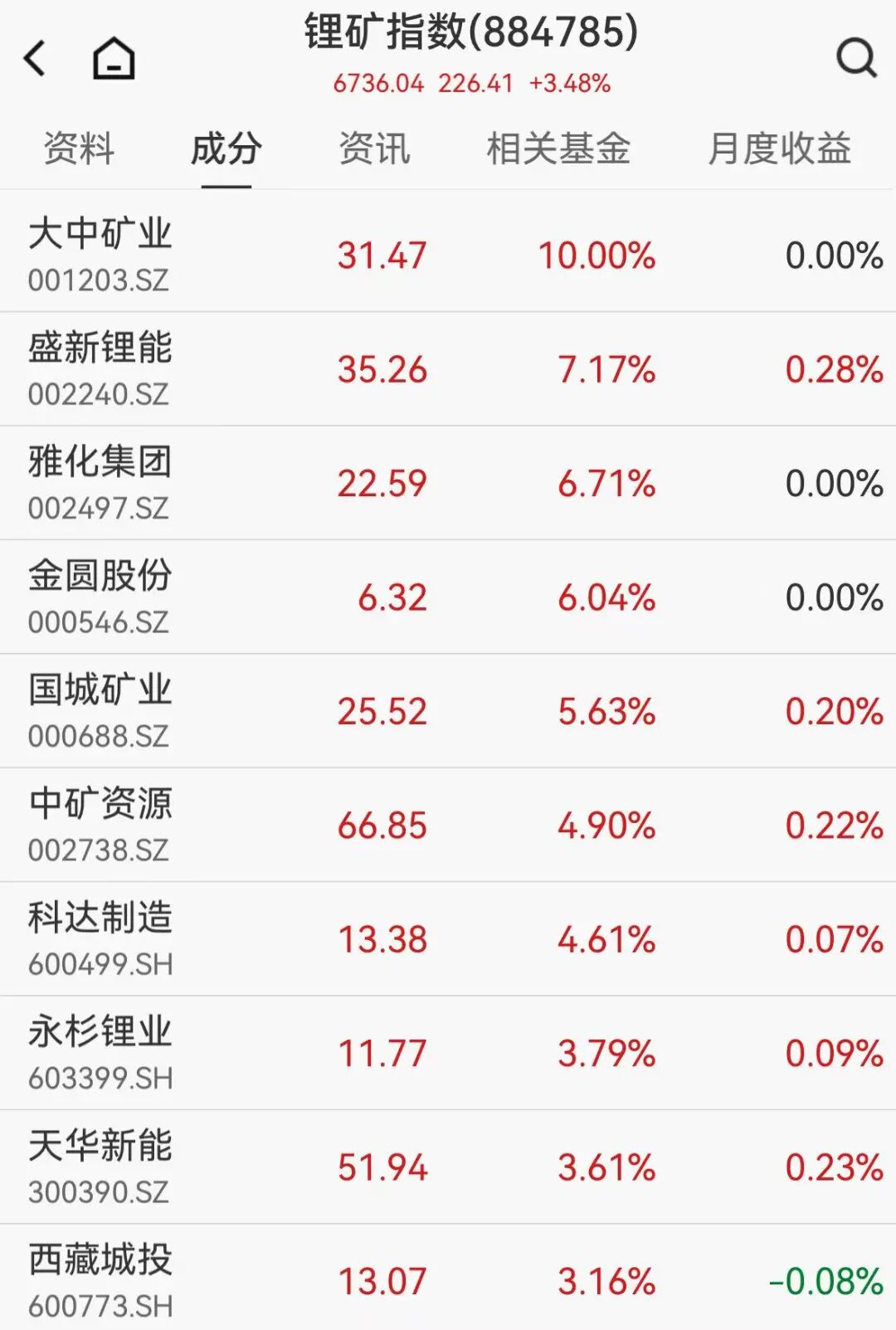 锂矿股连续反弹,大中矿业强势封板,盛新锂能涨超7%,雅化集团涨超6%。