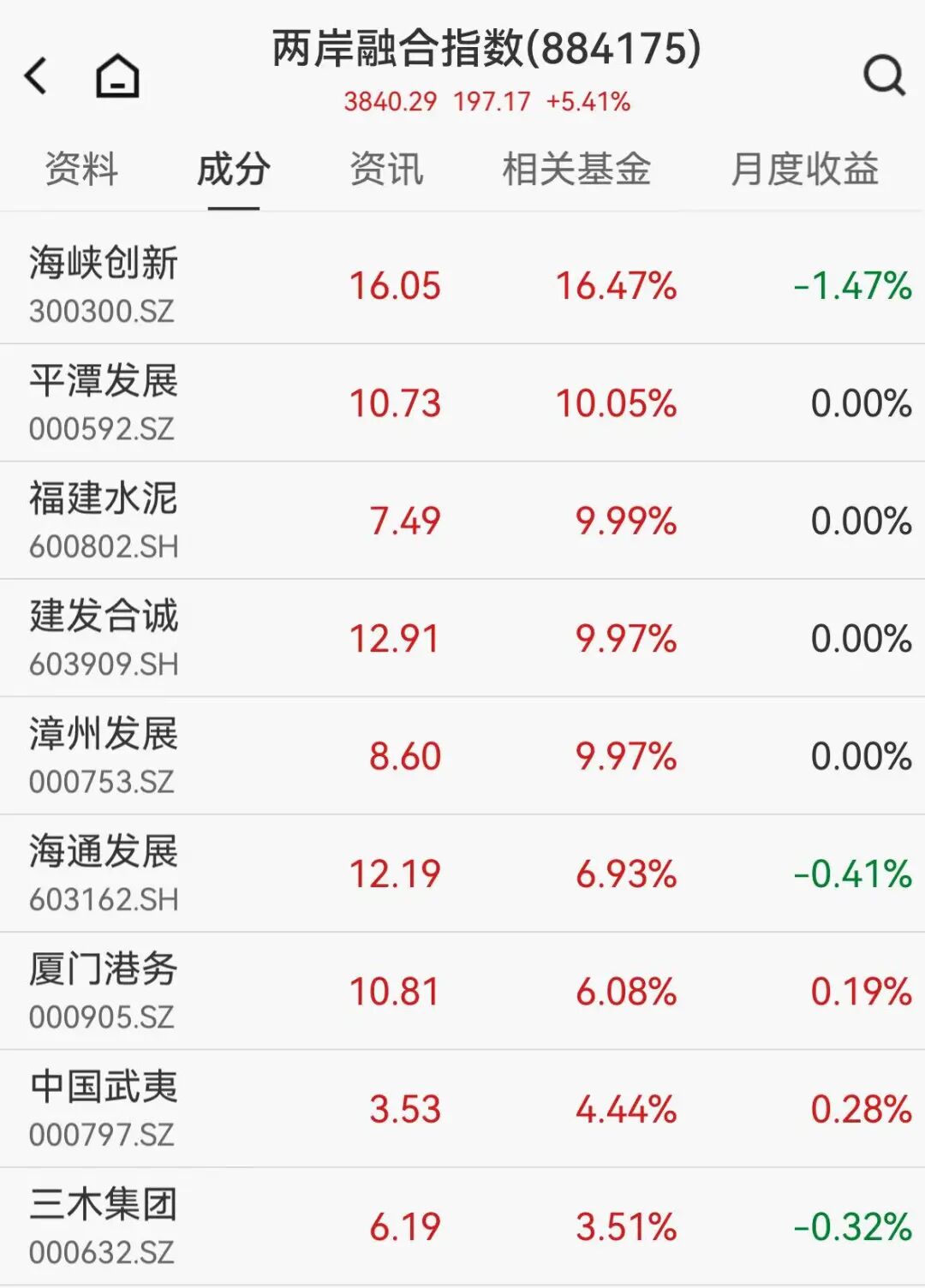 福建板块反复活跃,午后进一步加大反弹力度,海峡创新大涨超16%,平潭发展、福建水泥等多股涨停。