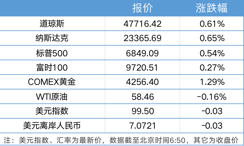 1、美股因感恩节假期提前3小时收盘,三大指数连续第五个交易日集体收涨,纳指涨0.65%,道指涨0.61%,标普500指数涨0.54%。纳指本周累计上涨4.91%,道指累涨3.18%,标普500指数累涨3.73%。科技股多数走高,英特尔收盘上涨10%,创9月18日以来最大单日涨幅;Meta涨超2%,AMD、亚马逊、奈飞、微软涨超1%。