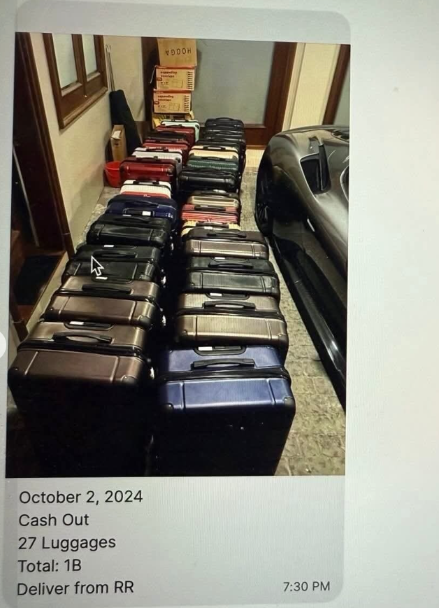 为了证明自己没说谎,扎尔迪在发布视频时,还附上了两张关键照片:一张是27个塞满现金的行李箱,另一张是列有付款明细、日期的单子,清单显示这些钱都支付给了一个代号“RR”的人,时间标注为2024年10月。