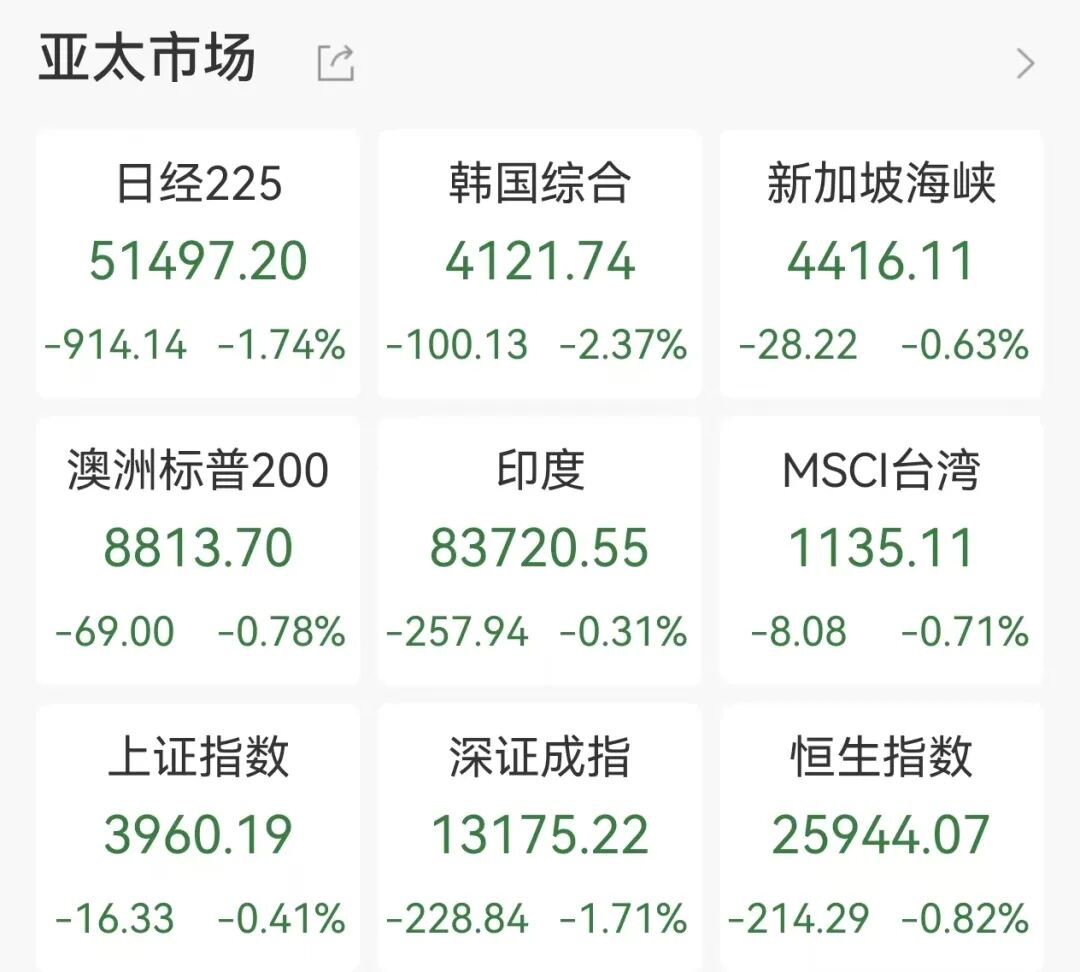 - 近期热门资产持续回落,最开始是黄金,接着是虚拟货币,再到今天涨幅较大的股市(如韩股),加大的资金兑现压力。