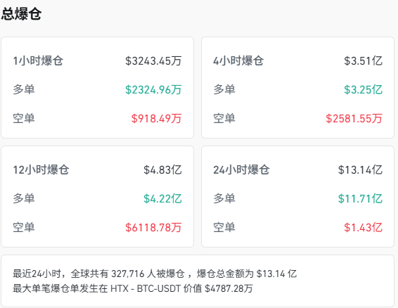 加密货币市场也在午后加速跳水,比特币近24小时内跌超2.5%,以太坊跌5.6%,Coinglass数据显示,市场超32.7万人爆仓。