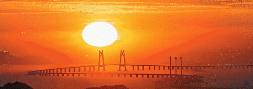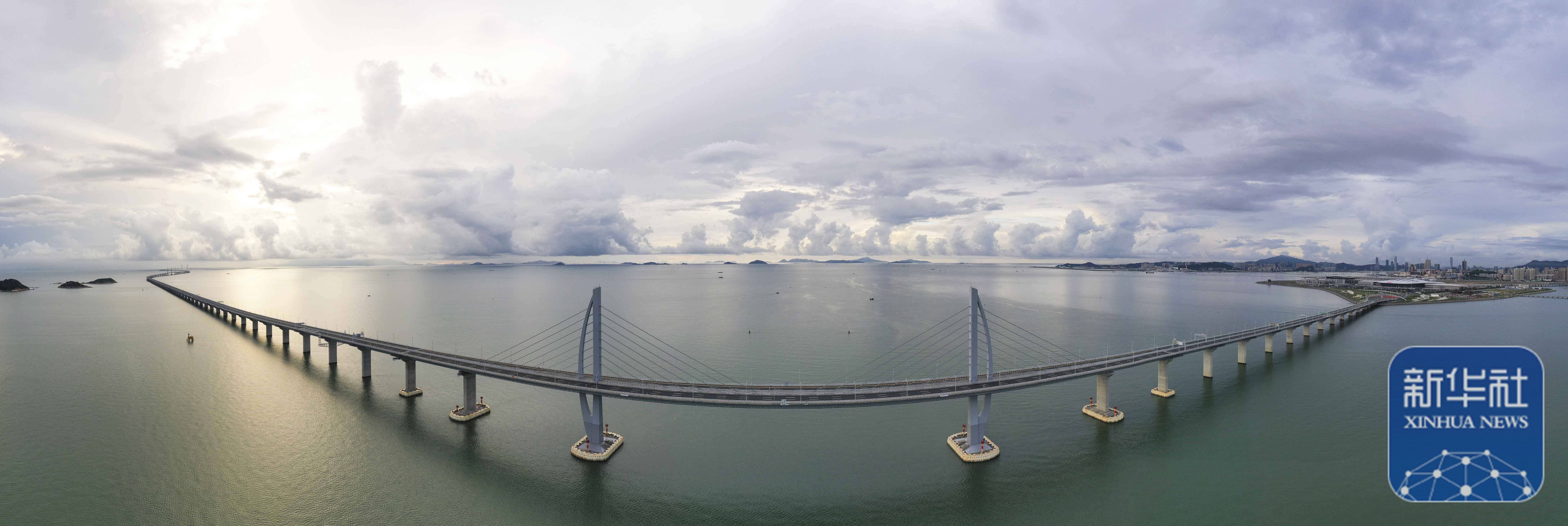 港珠澳大桥上,晨光洒在车流之上。