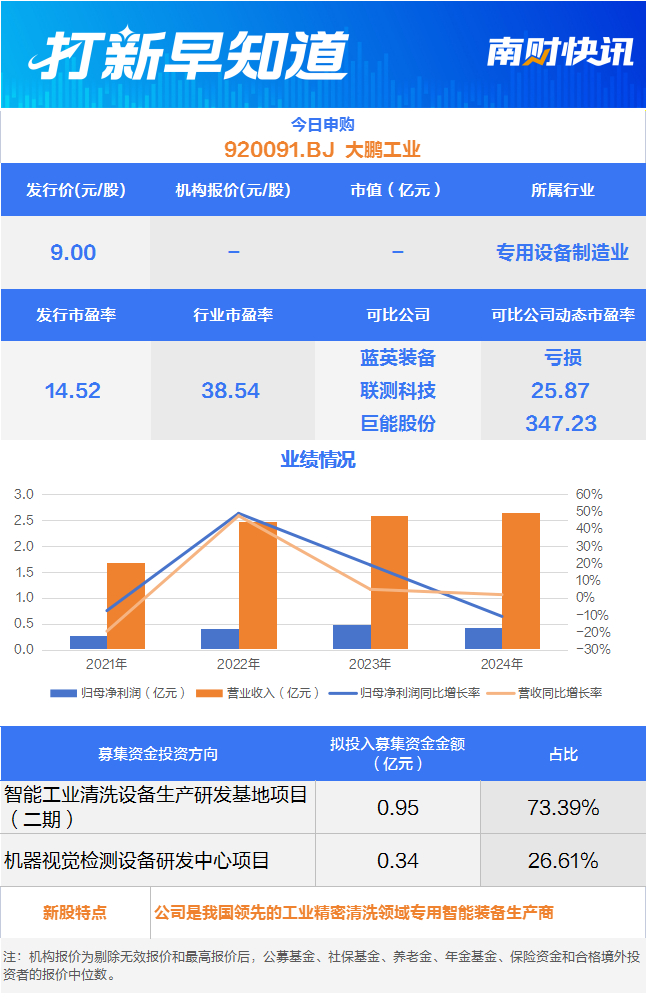 工业清洗隐形冠军,比亚迪“小伙伴”今日申购,另有一只新股上市丨打新早知道