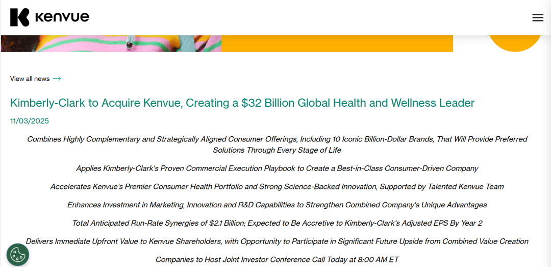 金佰利487亿美元收购科赴,又一健康个护巨无霸来了?