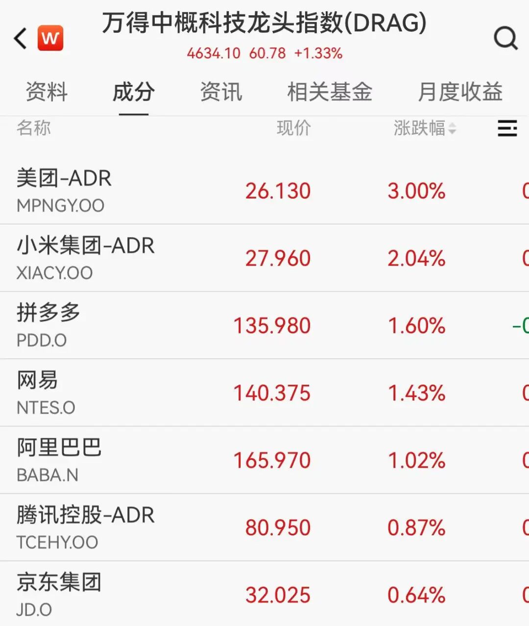 中国资产深夜拉升,美团涨3%,小米、阿里、网易集体上涨,苏轩堂药业狂飙20%