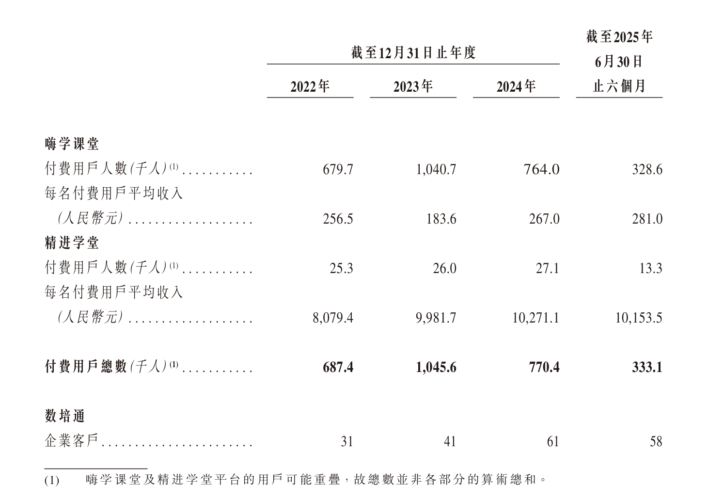 因此,嗨学网将“嗨学课堂”的低价付费用户进一步转化为“精进学堂”的高价付费用户。招股书显示,2024年,“精进学堂”的平均价格为10271.1元,付费人数为2.71万人,是“嗨学课堂”人数的3.5%。