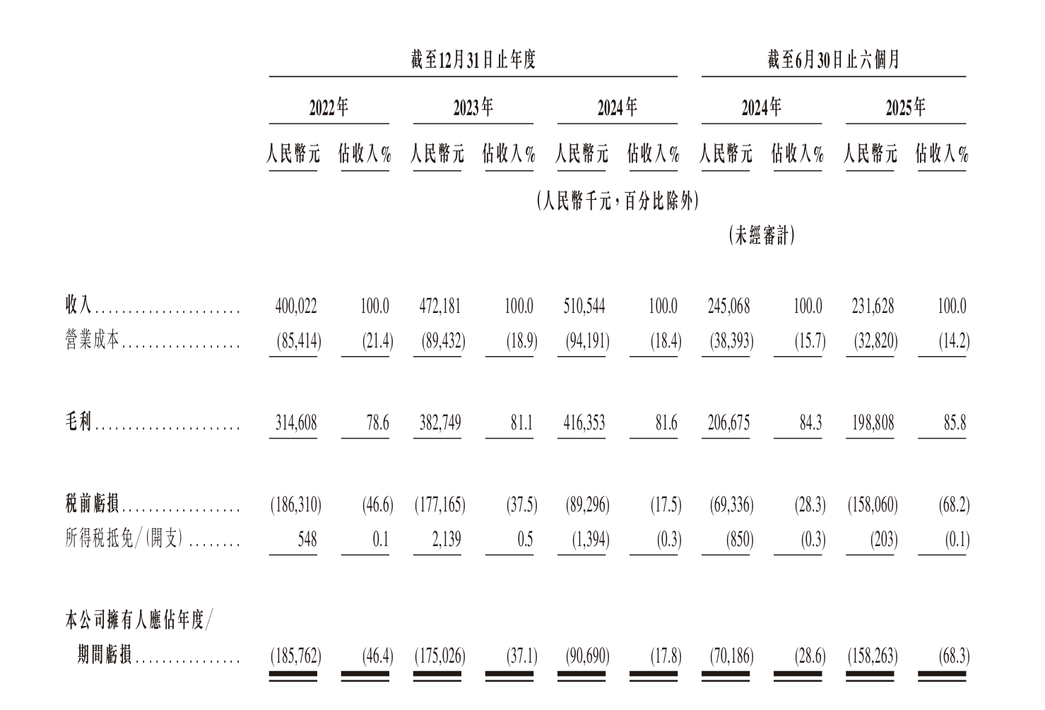 招股书披露的部分财务数据