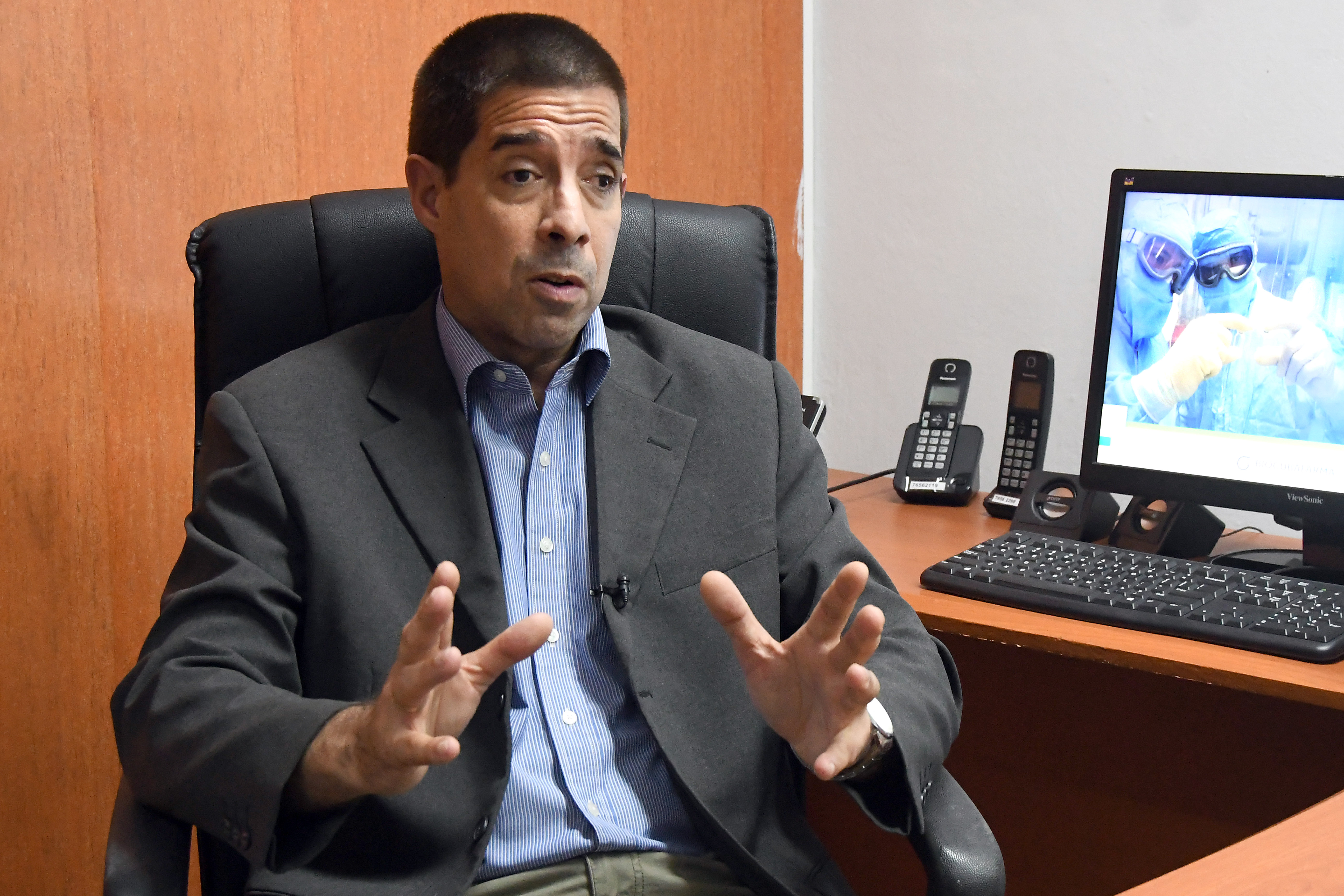 10月21日,在古巴首都哈瓦那,古巴生物医药集团副总裁圣地亚哥·杜埃尼亚斯接受新华社记者专访。新华社发(华金·埃尔南德斯摄)