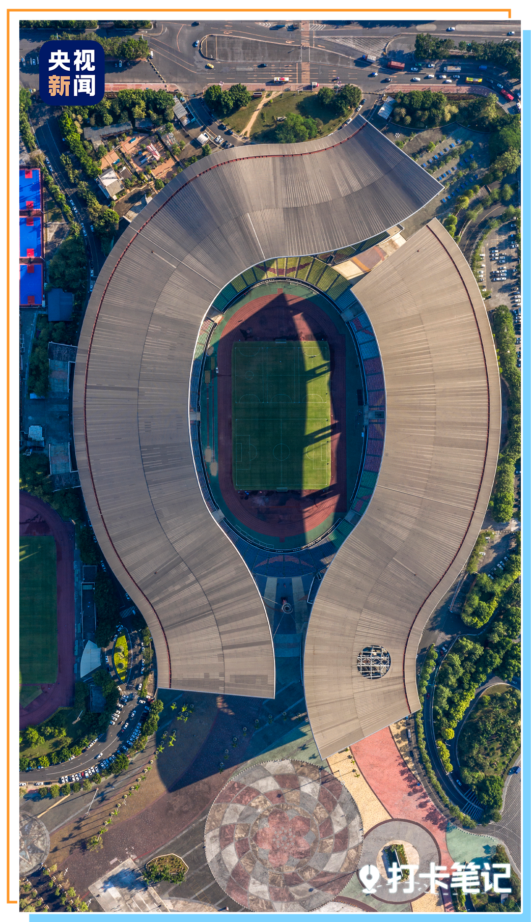 经过升级改造后的广东奥体中心体育场,新造型也很有看点: 设计灵感来自 “珠水奔流、湾区浪涌” 。屋顶像飘带,看台像木棉,广场景观像珠江翻涌的波浪~整体呈现海蓝色调,很有大湾区的氛围感!