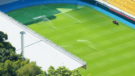 你见过“会呼吸”的草坪吗?这里使用的天然草+人造草融合技术,配有智能温控和立体排水系统—— 暴雨后20分钟就能 恢复如初 , 确保赛事不受天气影响。