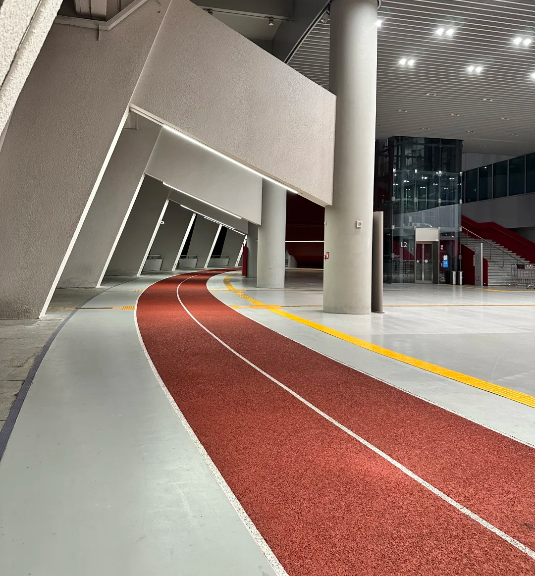 体育中心外围还 新增 941米专业健身跑道 , 二层增加700米风雨跑道,让你随时畅跑。