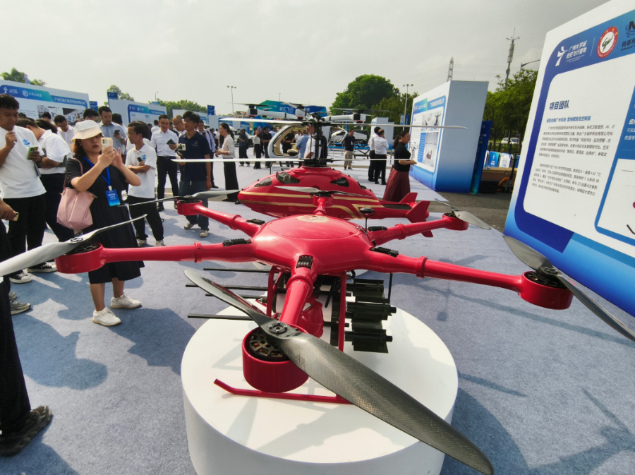 10月16日,广州大学城低空飞行营地正式启动,图为现场展示的低空飞行器。