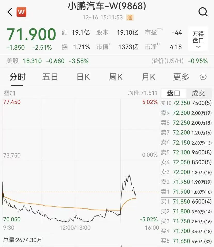小鹏汽车午后下跌2.64%,此前一度跌近5%。消息面上,小鹏汽车已在广州市获得L3级自动驾驶道路测试牌照,并启动常态化的L3道路测试。