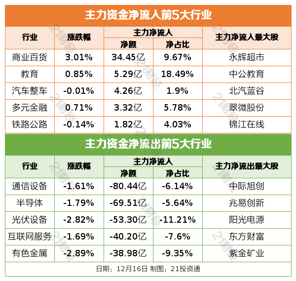 12月16日,市场全天震荡调整,三大指数集体低开低走。截至收盘,沪指跌1.11%,深成指跌1.51%,创业板指跌2.1%。沪深两市成交额1.72万亿,较上一个交易日缩量493亿。全市场超4300只个股下跌。