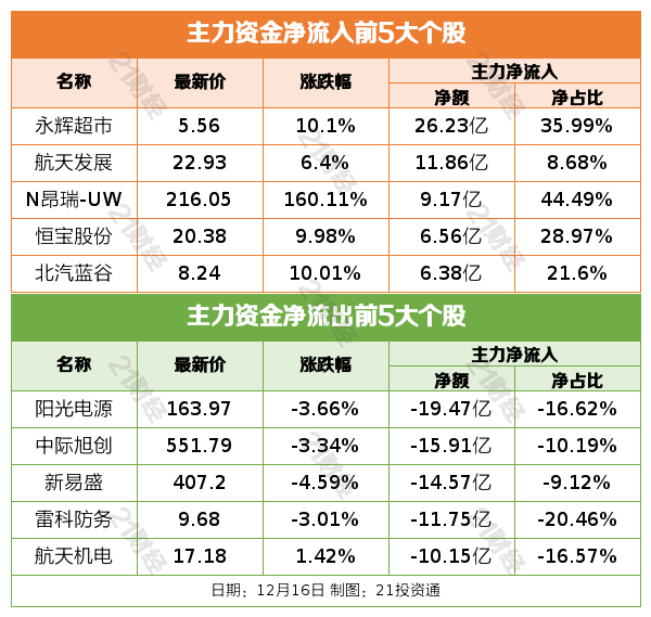 纽约股市三大股指12月16日。截至当天收盘,道琼斯工业平均指数比前一交易日下跌302.30点,收于48114.26点,跌幅为0.62%;标准普尔500种股票指数下跌16.25点,收于6800.26点,跌幅为0.24%;纳斯达克综合指数上涨54.05点,收于23111.46点,涨幅为0.23%。