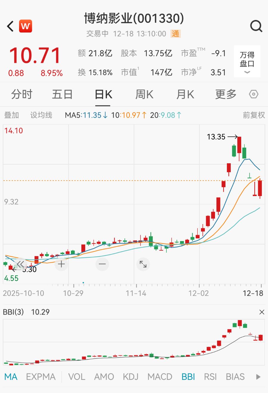 作为“阿凡达概念股”,博纳影业(001330.SZ)12月18日早盘一度涨停,带动影视院线板块回暖,但随后开板股价震荡。此前,博纳影业在上演“五天四板”行情之后连续两日跌停。