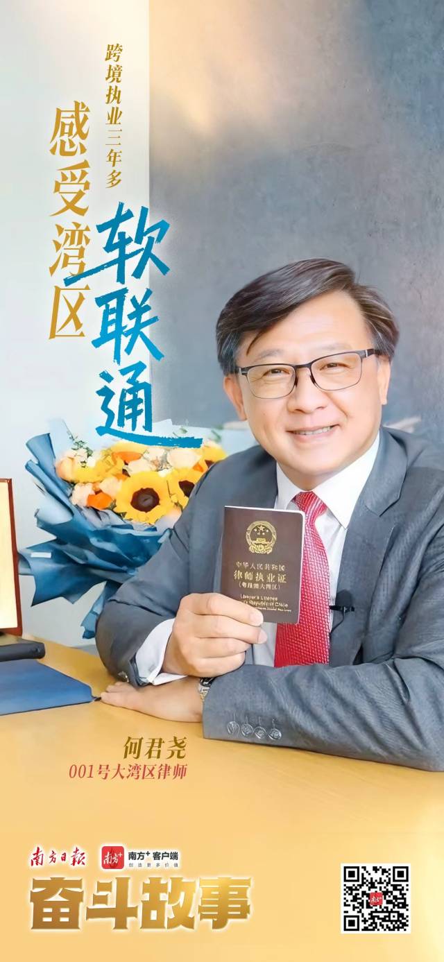 从1992年参与内地经济仲裁案件,到2022年成为首位大湾区律师,再到如今见证三地法律规则融合,何君尧的执业生涯,正是大湾区加速融通的生动缩影。