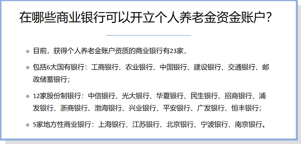 第二步:通过商业银行手机银行或柜面等渠道,开立个人养老金资金账户。通过商业银行渠道,可一次性完成第一步和第二步。