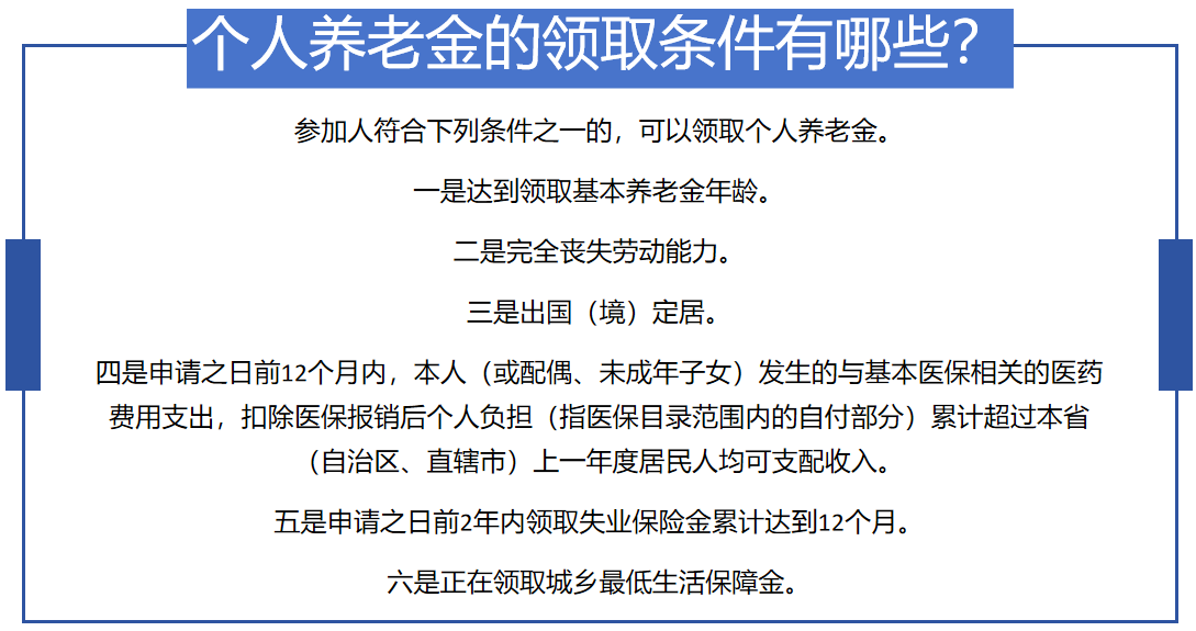 第五步:通过商业银行渠道,选择按月、分次或者一次性等方式领取个人养老金,由商业银行代扣代缴个人所得税后,转入本人社会保障卡。