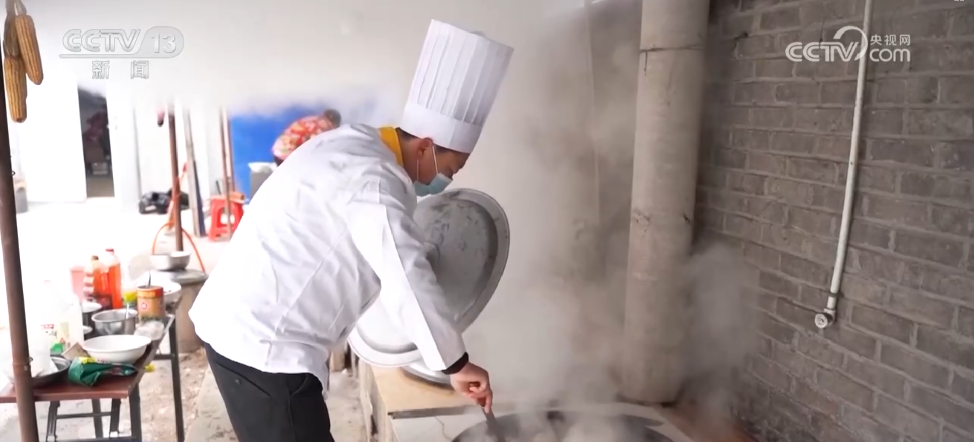 不少年轻人专门来这里拍照打卡。无论是选择“躺平”还是“卷起来”的姿势,围着草垛子,大家都能在欢声笑语中轻松拍出趣味大片。玩饿了,还可以坐下来品尝地道的东北美食。中午时分,村里大食堂正炖着笨鸡、大鹅、酸菜等特色菜,掀开锅盖,香气扑鼻。