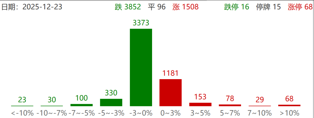 个股方面,上涨股票数量超过1500只,近70只股票涨停。全市场近3900只个股下跌。