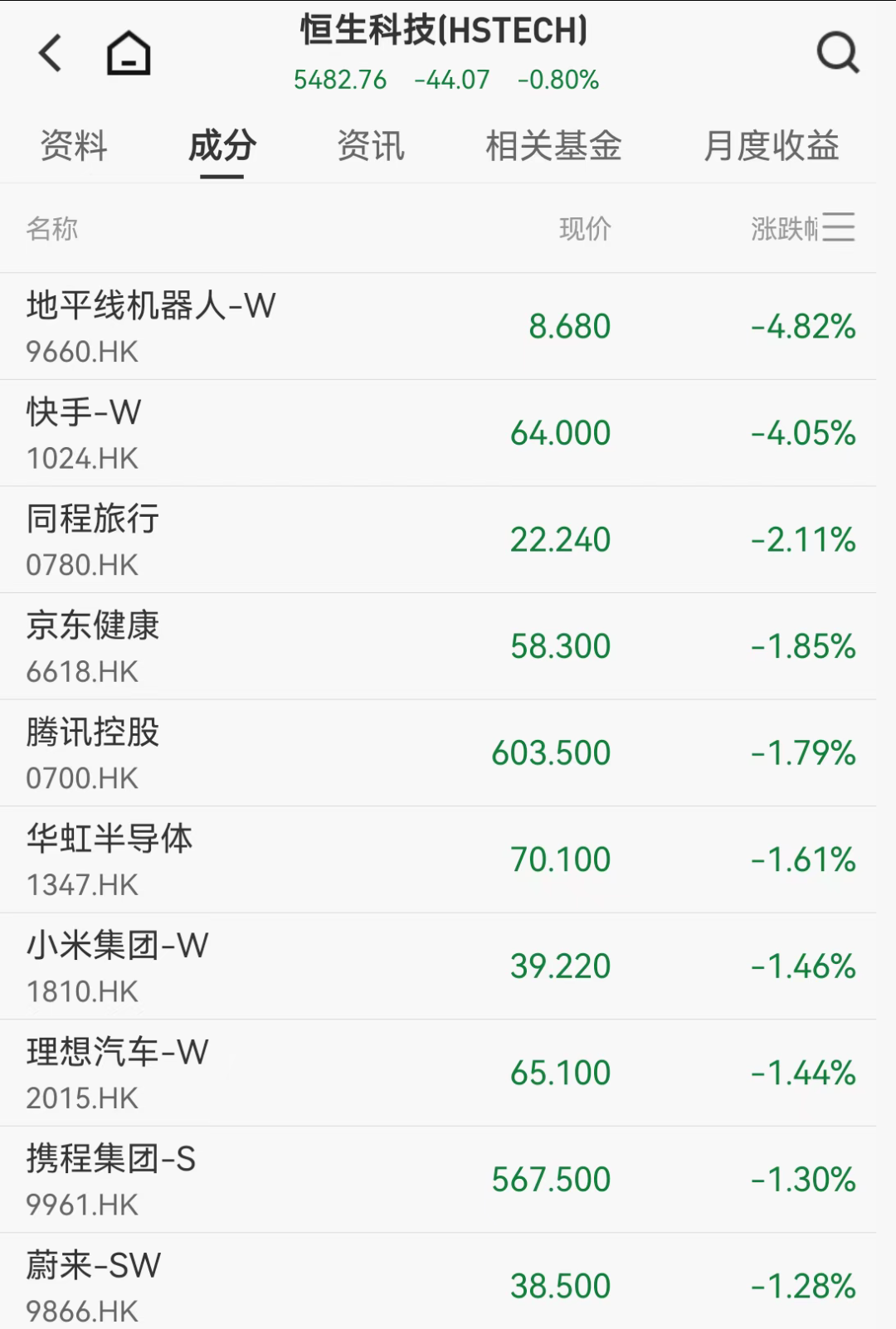 港股方面,截至发稿各大指数翻绿,恒生科技跌0.8%,多只科网股集体跳水。地平线机器人跌近5%,快手跌4%,同程旅行、京东健康、腾讯控股、华虹半导体等集体跳水。