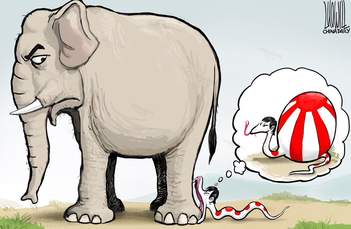 中国有句俗话“贪心不足蛇吞象”,日本右翼想做亚洲乃至世界霸主的野心荒唐可笑。(来源:中国日报 罗杰 英文《中国日报》2025年12月18日8版)