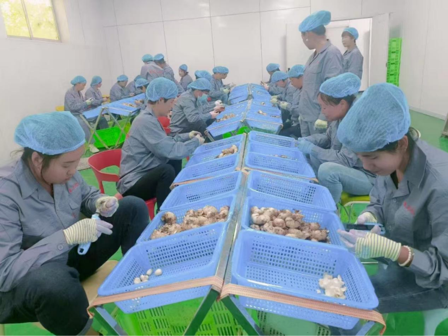 村民对药材做精深加工。