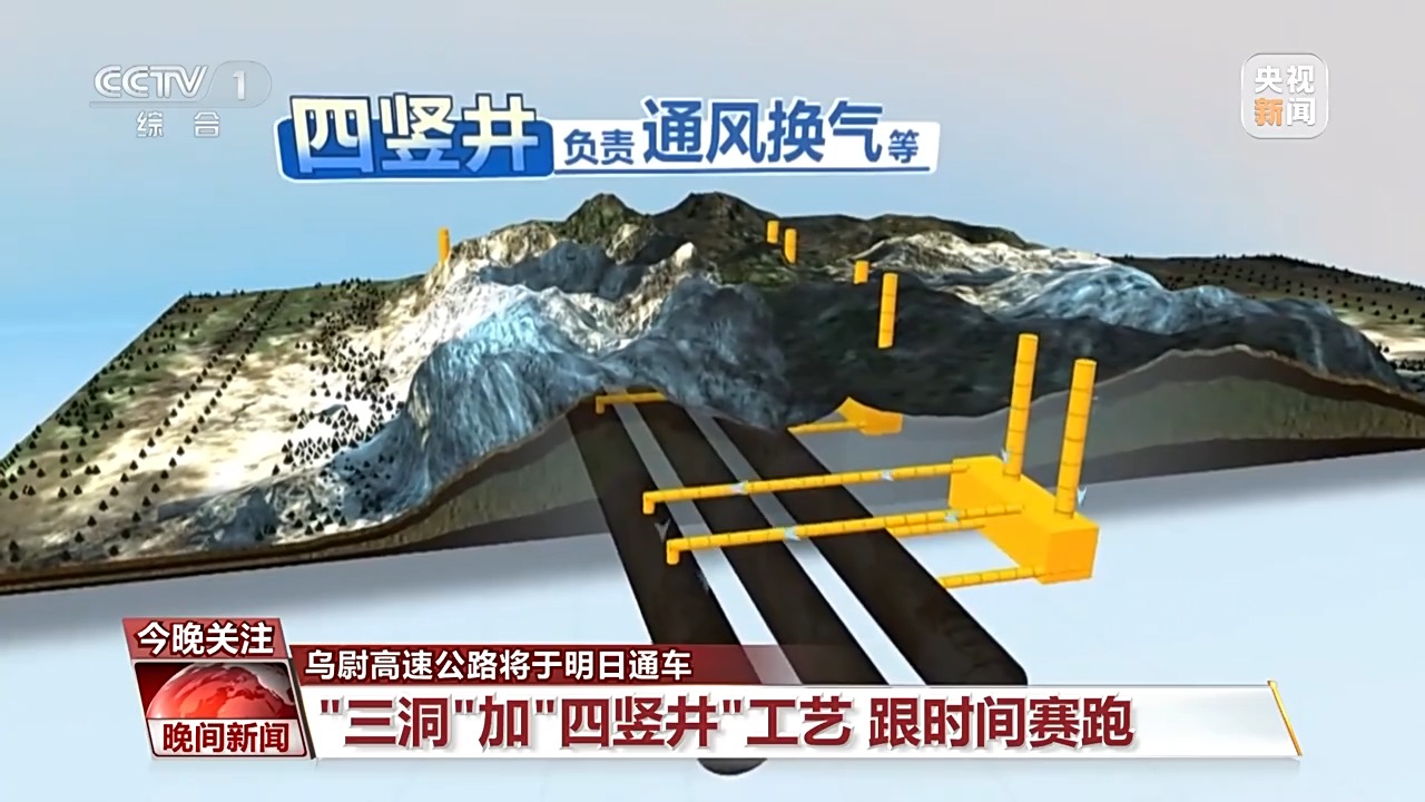 “三洞”就好比在天山肚子里平行插了三根长长的吸管,“四竖井”就是在吸管旁建了四组辅助通道,负责通风换气等。“三洞”中的左、右两个主洞将来是车辆南北通行的主干道,中导洞则是具有服务功能的隧道。