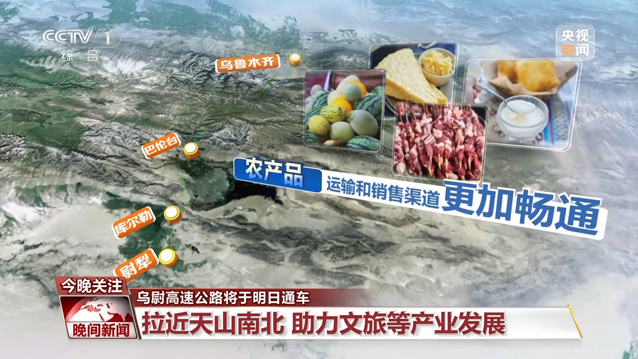 乌尉高速通车后,从乌鲁木齐市至库尔勒市驾车时长,由此前的7小时缩短至3.5小时,农产品运输和销售渠道更加畅通,新鲜的牛羊肉、乳制品、瓜果能迅速抵达城市餐桌,对游客来说,早餐乌鲁木齐,午嬉孔雀河,傍晚归家不是梦,一日内体验南北疆迥异风情的愿望将得以实现。