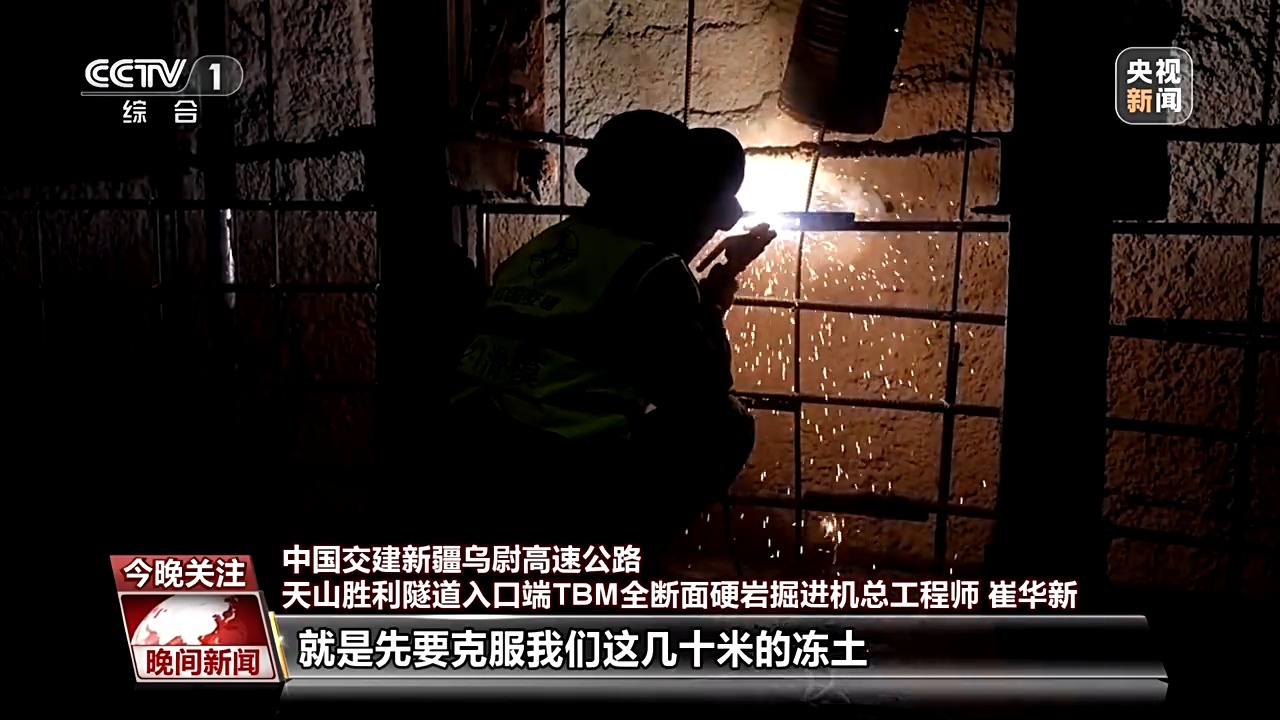 中国交建新疆乌尉高速公路天山胜利隧道入口端TBM全断面硬岩掘进机总工程师 崔华新:现在我们所处的位置,是我们竖向掘进机开挖完成之后,我们竖井的最后一道工序也就是二衬。随着我们的施工进度不断提高,我们经历黑暗的时间也是越来越短的。